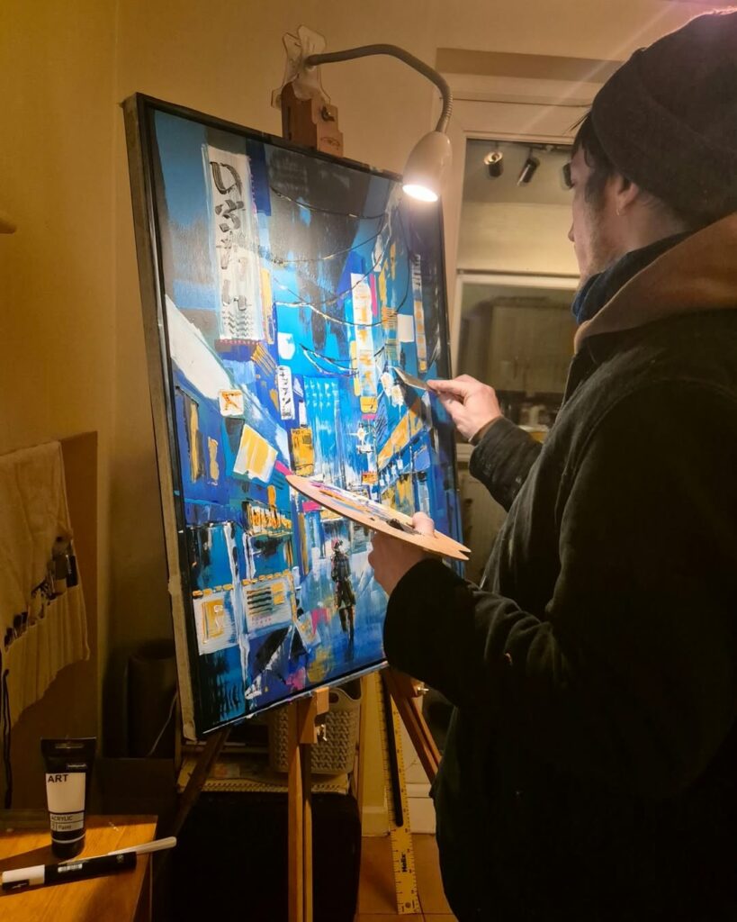 Joe Cassidy is a Norwich-based artist whose work explores urban and natural environments through expressive brushwork and bold colour palettes. Living with bipolar disorder, he blends impressionist and expressionist techniques to create vivid, mood-driven scenes that translate internal experience into external landscapes. “This personal flux informs the way I paint – expressively, intuitively, and often shifting process or medium to mirror inner states.” Joe’s work is currently exhibited in several galleries across the UK.
